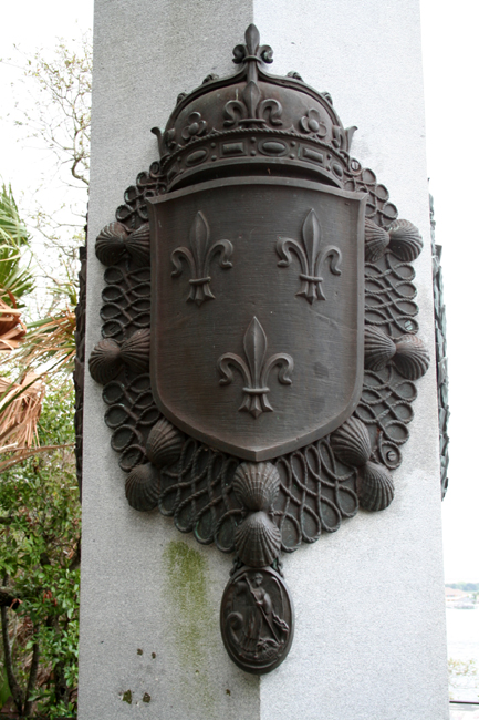 Source: Photo taken by WTL© at Fort Caroline of the French fleur-de-lis crest similar to the one Jean Ribaut had affixed to the column he had erected. Comment: For Jacques LeMoyne's painting of the column and the crest, see the following image: LeMoyne/DeBry # 5. Discussion topic: Compare and contrast the modern photograph with the sixteenth-century engraving / painting. |