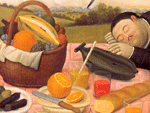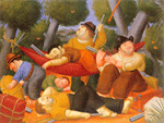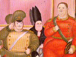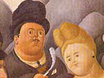This series of images focuses on the contemporary Colombian artist (painter and sculptor), Fernando Botero. His themes cover self-portraits, portraits, nudes, love, bishops, military men, still lifes, bordellos, bullfights, and landscapes. Recently, he has done a dramatic series of paintings on the American Abu Graib disaster in Iraq. In his introduction to Botero; Paintings and Drawings (New York: Prestel, 2007), Werner Spies says this about Botero, with a quotation from the Peruvian novelist Vargas Llosa: "In sum, Botero's oeuvre is not only suffused with stupendous technical mastery and unparalleled knowledge of the museums; it is also imbued with a lucid awareness of personal origins that prevents him from succombing opportunistically to the blandishments of the international art scene. What Vargas Llosa notes with regard to his own experience applies to Botero as well: 'In everything Latin America has produced in the way of authentic art one finds a strange combination of attraction to, and rejection of, things European: the European tradition is either employed to different ends, or forms, motifs, and ideas are introduced into it that call the heritage in question or put it to the test, without, however, denying it'" (23). |