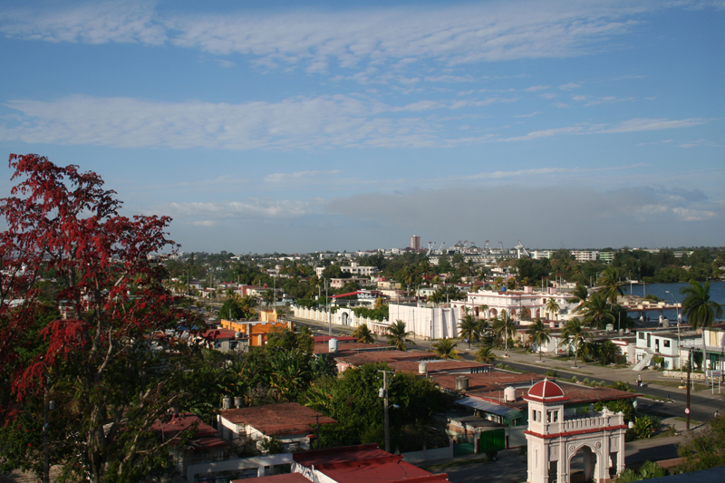 Comments: The city of Cienfuegos (Spanish > hundred fires) is located on the south coast of Cuba about 160 miles from Havana. Population in 2012 is about 186,000. Like New York City, which is known as The Big Apple, Cienfuegos is known as La Perla del Sur (Pearl of the South). The image above was taken from the Jagua Hotel, a fine tourist hotel on the Caribbean. Interestingly, the city is rather new, for it was founded in 1819 by immigrants from France and French-speaking Cajun country in Louisiana. At the time, Cuba was a Spanish colony, and it was ruled by the dictatorial king Fernando VII; hence the settlement was named Fernandina de Jagua, combining a reference both to the king and to the original inhabitants, the Jagua people. Incidentally, Hurricane Dennis came ashore at Cienfuegos in 2005 with wind gusts up to 177 mph.