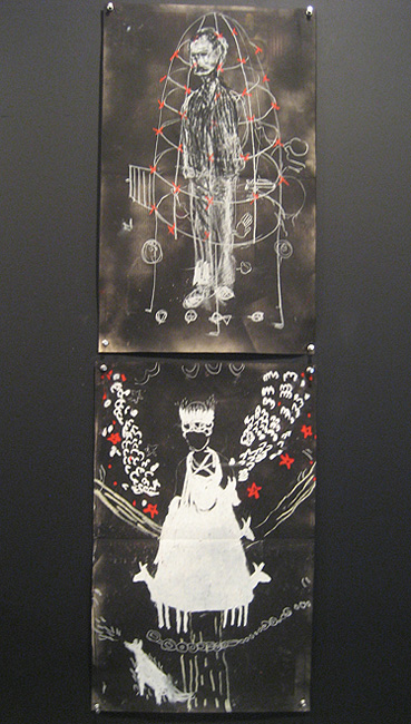 in the Work Series (mixed media on newsprint, 13" x 22). This pair of paintings were displayed on the north wall under the exhibition's title.