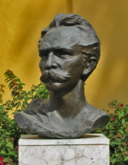 Comment: On the left is one of the most famous photos of José Martí. In the middle is a portrait in oil of him by Herman Norman. On the right is a bust of Martí in the garden adjoining the house.