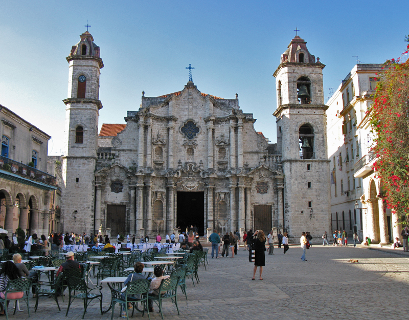 Comments: The Catedral de San Cristóbal (Cathedral of Saint Christopher) is, naturally, on the Plaza de la Catedral. The façade is in late Spanish Baroque style. The edifice was begun in 1748 by the Jesuits, but, when this powerful religious order was expelled from all Spanish territories in 1767, the cathedral was finished by the Franciscans in 1777. Originally, the parish was called the Catedral de la Virgen María de la Inmaculada Concepción, but the name was changed in 1789 to its current name because, between 1789 and 1898 Cubans thought that the remains of Christopher (Cristóbal, in Spanish) were buried in the cathedral. Nowadays, only the cathedrals in Santo Domingo and Sevilla along with a Franciscan convent in Valladolid, Spain, think that that they house Columbus's remains.