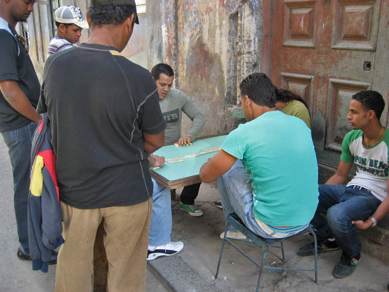 : Photograph© (2010) by WTL of young men playing dominoes in Old Havana (La Habana Vieja).