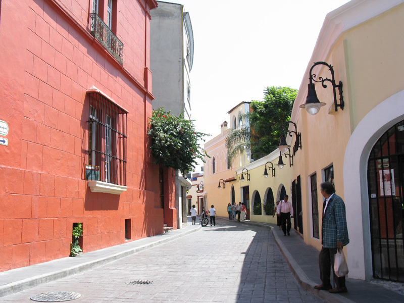 Source: WTL© photo 2009 taken on site in Cuernavaca. Image: A view of one of the streets in the city's old historical district (centro histórico). Comment: In recent years the core of the old city has been remodeled as you see it, but not after a fight by the small shop owners and others who were displaced by the federal law requiring historical cities to upgrade their core (i.e., tourist) centers. Humanities Question: What do you think about what you see in this photo now that you know what is contained in the comment above: |