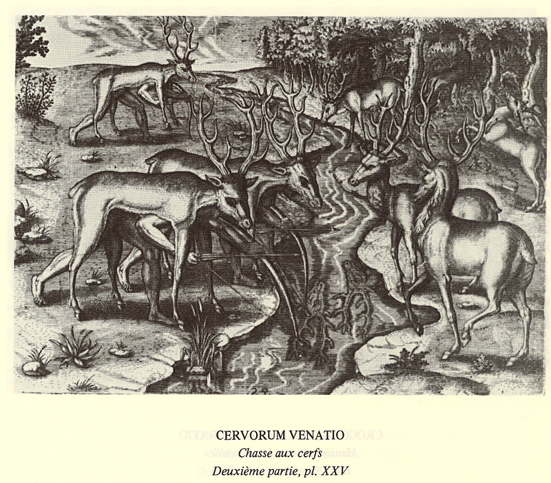 Metaphors: Men in deer skins; antlers, bows and arrows, stream.