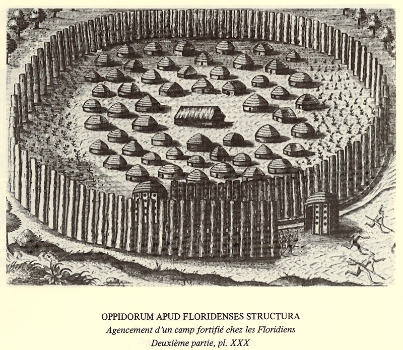 Latin / French title: Structure of a camp as fortified by the Floridians.