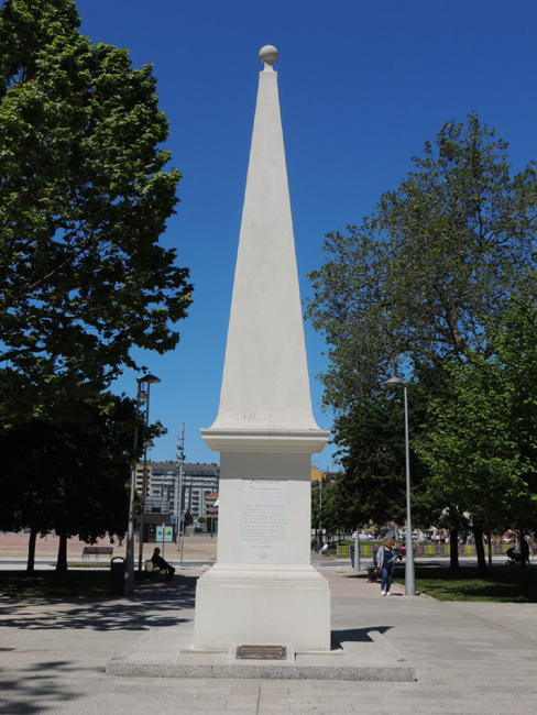 Source of image: WTL© on site in Avilés, 2016. Comments: Here. See the embedded images in the following link: => Avilés Page 7a. Humanities question: Describe what you see, and if you can, from memory, think about the similarities and differences between this obelisk and where it is, on the one hand, and the original, on the other hand. |