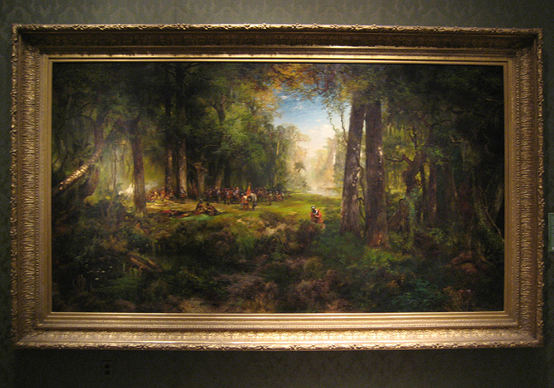 Comment: This is a very large canvas, measuring 63" by 115". In 1877, Moran went to Florida to paint St. Augustine and the St. John's River areas. In Art in Florida (Pineapple Press, 1999), Maybelle Mann says that Moran's "imagination was captured by Ponce de León's association with the town [i.e., St. Augustine]" (pp. 14-15). She adds that "Moran was impressed with the forests of Florida, which, when he first went to the state, were virtually impassable south of St. Augustine" (65).