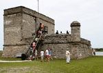 This series of images focuses on the Spanish colonial fort Las Matanzas, south of San Agustín / Saint Augustine on Rattlesnake Island. (Matanzas is Spanish for 'killings'.) A Spanish military fort has been on this site since 1565, while the current fortress was constructed in 1740. The Matanzas Inlet is 14 miles south of St. Augustine. It is/was strategically important because the inlet gives access by water (nowadays kayaks: it's a great place to kayak; I know) from the sea to St. Augustine. The first fort was constructed by the Spanish under Menéndez de Avilés following the massacre here of the French Huguenots who had escaped (i.e., were blown) in a violent storm (hurricane?) from their settlement on the St. John's River (now in the city of Jacksonville): these French survivors were actually trying to sail back to France. (See, also, the photographic essay on Fort La Caroline: =>).