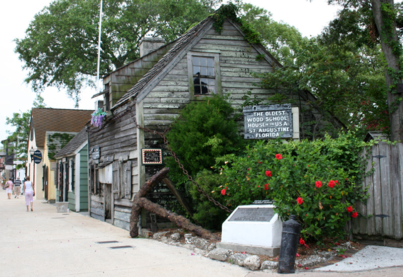 Comments: This school house was built before 1763 at the very end of the first Spanish period and just before the beginning of the British period (1763-1783). It is located at 14 St. George Street, and it is the oldest wooden school structure extant in the United States. In the inner courtyard to the right of the building is a garden (patio) honoring four outstanding Latin American educators including the Cuban José Martí. In the inner patio there are monuments to four other Latin Americans who were prominent in promoting education in Latin America: Ramón Castilla (1797-1867), a liberator of the slaves in Perú who promoted the ideal of Pan Americanism; Dr. José María Vargas (1786-1876), president of Venezuela, an educator and social leader; José Trinidad Reyes (1796-1855), a Honduran teacher, humanist, and poet, and he was the founder of the Universidad de Honduras; and Octavio Méndez Pereira (1887-1955), prominent Panamanian educator. All monuments were presented to the private owners of the Oldest School House by their respective governments through the auspices of an American diplomat who had high level contacts in each country, and who was dedicated to strong relations between the United States and Latin America.
