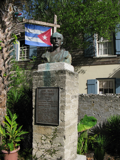 Source: WTL photograph© 2010. Images: Monument and bronze statue honoring José Martí as Cuba's greatest educator in the garden adjoining the Oldest Schoolhouse in downtown St. Augustine .