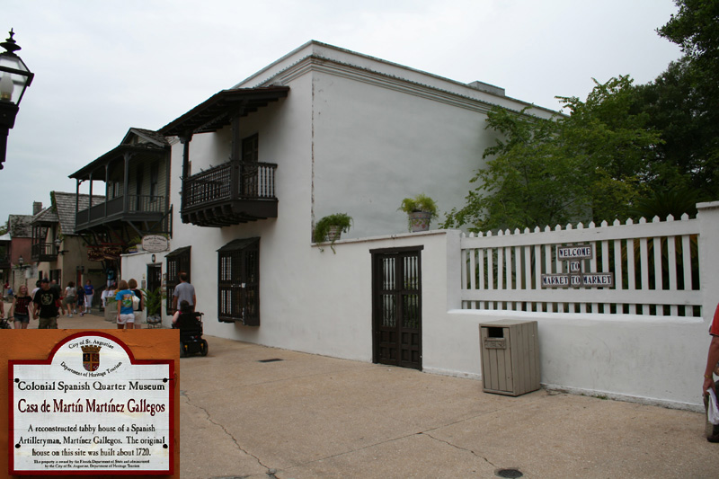 Source: WTL photograph© 2007. Image: Spanish colonial tabby house from ca. 1720. The Martín Martínez Gallegos' house is hidden on the right, behind the fence and garden. Latin American humanities: Spanish colonial architecture. Humanities question: Notice that the Spanish architectural elements seen here have been used extensively throughout Florida and the American Southwest as a prestigious style in the 20th and 21st centuries. Why? In St. Augustine as in the American Southwest, which was Spanish and Mexican territory until 1848, such so-called Spanish mission style is also a major tourist attraction. Why? |