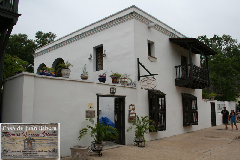 Source: WTL photograph© 2007. Image: Spanish colonial tabby house from ca. 1720. (As you can see, we have moved up St. George Street; we're now looking back at the house attached to the previous home. The entrance is through the door on the left, which opens onto a patio. Notice the typical Spanish architectural elements: balconies, elaborate woodwork, grill-covered windows (rejas), and white washed color. Questions: What is your reaction to this architecture? Except for the balcony and the window coverings, why does the external style seem so plain? What is the role of the patio in Spanish and Spanish-American architecture? Latin American humanities: 18th century Spanish colonial architecture. |