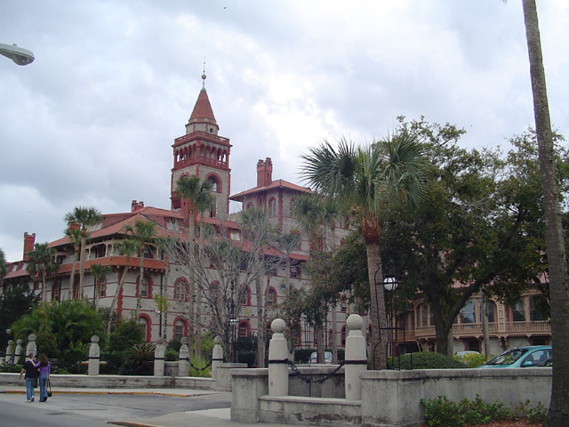 Comments: This grand college building was originally Henry Flagler's Ponce de León Hotel (1888). Flagler College (1968) is now a coed private liberal arts college. Henry Flagler (1830 - 1913) was a real estate tycoon, railroad developer (Florida East Coast Railway), and partner in Standard Oil. He is known as the "father of Miami, Florida." Incidentally, he funded the second tower on the Cathedral.