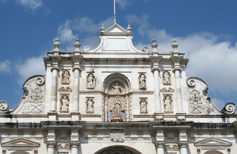 Source: WTL© digital photograph taken on site in Antigua, Guatemala (2008). Image: Close-up of the top panel of the façade. Humanities topics: Describe what you see and relate it to colonial Latin American architecture and the period. What kind of society, economy, and culture is required in order to build such an edifice? Note that Mayan laborers provided almost all of the physical labor and much of the craftsmanship. |