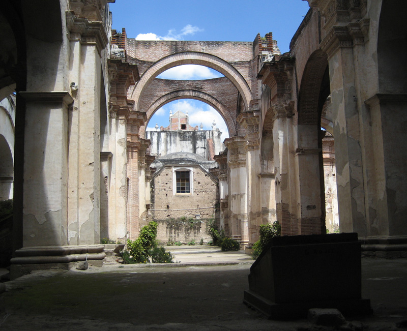 Source: WTL© digital photograph taken on site in Antigua, Guatemala (2008). Image: Ruins inside the cathedral's central nave. Humanities question: What is your interpretation of the fact that Guatemala's INGUAT (Instituto Guatemalteco de Turismo), the Catholic Church, and the city of Antigua have left this building in ruins—there is now an admission fee to visit it as a kind of museum complete with guided tours? |
