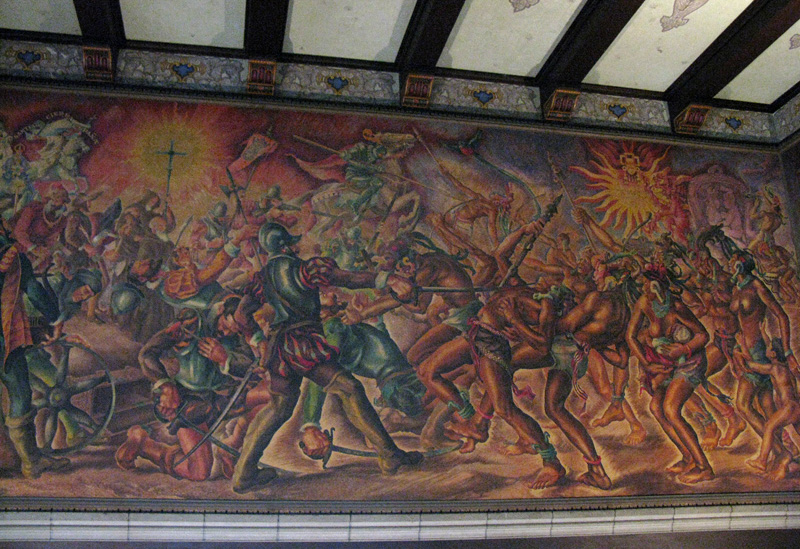 Source: WTL© digital photograph (2008) taken on site in Guatemala City. Image: Mural (d) by Guatemalan muralist Alberto Gálvez Suárez: "The Clash Between the Spaniards and the Indians" (1944). Humanities question: In what ways does this mural illustrate its title? |
