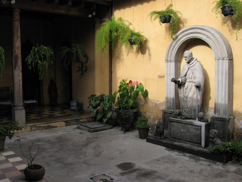 Source: WTL© digital photograph (2008) taken on site in Guatemala City. Comments: Here is a view of the servants' patio viewed from near the bathrooms. Humanities question: What is the purpose of the framed statue on the right in this particular context? |