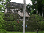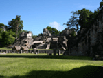 Comments: The Mayan archeological site at Tikal is the most impressive of the major Mayan sites that have been rather well excavated and partially restored. Recent discoveries suggest that Tikal is not, as was long supposed, the largest of all Mayan sities--that honor now belongs to El Mirador in NW Guatemala--but it remains the best studied. Tikal's ruins are located in the national park (Parque Nacional Tikal), which is surrounded by the Reserva de la Biósfera Maya in the Petén departamento (state) in northern Guatemala. The first several images in this digital tour of Tikal are useful for orienting us in space, geography, urban planning, and pre-dawn time. Next the tour will take a look at some major features of past and present Tikal.