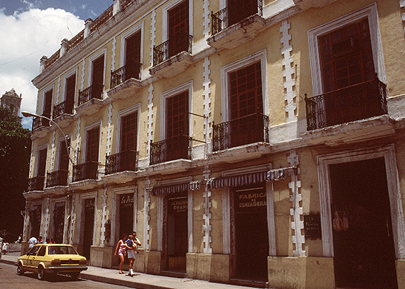 Notes: Here you see an example of one of many of Mérida's colonial buildings. This one dates from the eighteenth century. Notice the typical Spanish wrought iron balconies and the Neoclassical design (harmonious rectangular lines).