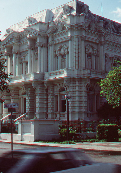 Right: the street sign says "Paseo de Montejo". The building is another example of a grand nineteenth-century mansion built with sisal-derived fortune.