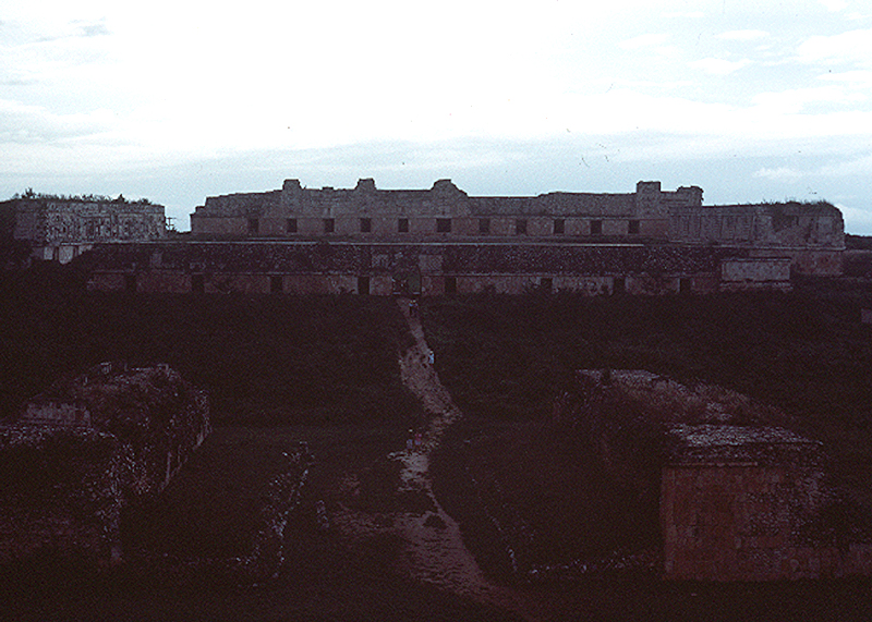 Notes: In this rather bad photo we are looking from the Governor's Palace through the Ball Court toward the Quadrangle of the Nuns. In the following pages we shall approach this building slowly as architecture, but not, unfortunately, for the intricate design motifs on its various façades. In fact, on the next page, you will see that we are standing in a doorway in the Governor's Palace.