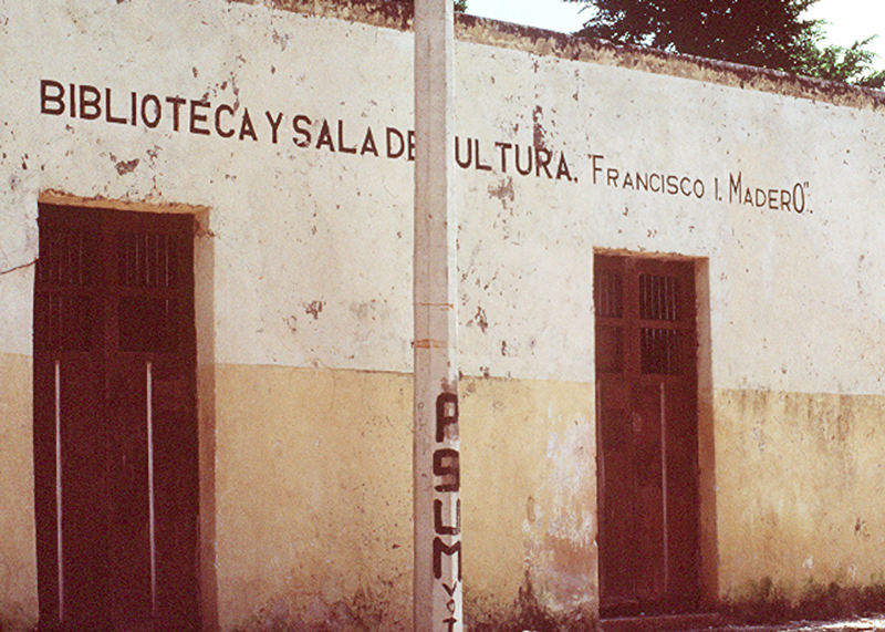 Notes: Biblioteca y Sala de Cultura Francisco I. Madero (Francisco I. Madero Library and Culture Center). Francisco I. Madero was the president and first leader (1910 - 1911) of the Revolución Mexicana, which lasted until 1920. As a result of this revolution, in which dictatorship was overthrown, democracy was instituted, and land distribution for the dispossessed was begun, education and culture were promulgated throughout México. There is hardly a pueblo in México regardless of how small or poor that does not have a school and a library or cultural center. By culture, Mexicans are extremely proud of education for their children, and they are deeply proud of their culture and the products of their humanities.
