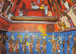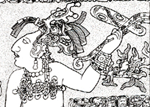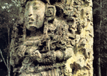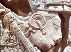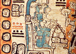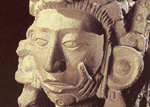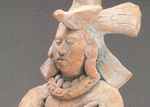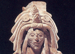 These representative images of Mayan art cover a period from 700 to 1500. However, Mayan art spans a period from 1500 BCE to the present. It developed out of influences from the Olmec civilization on the Mexican Gulf coast, the great and mysterious civilization of Teotihuacan (pyramid of the Sun near Mexico City), and the Toltecs. Mayan artistic expression in stone, pottery, murals, jade, obsidian, stucco, and codices is one of the richest artistic expressions in human history. Much—but not all—of Mayan art was religious or spiritual (i.e., ritual objects or images about their gods or the cosmos). Since many objects have been found in burial sites, many pieces are funerary or ritual objects. Much of Mayan art, also, was historical (about rulers and heroes). Not a few art objects, too, were about simply about regular human figures in daily life. In this regard, you will see not a little detailed realism in addition to stylized images. It is amazing to realize, when you study these images, that the Mayas did not have metal tools or the potter's wheel, not to mention the wheel itself. You will also see an example of the beautiful Maya pictographic writing or script, which, by the way, has been deciphered in recent years. Important note: These pages about Mayan art focus on their art from their pre-Columbian period. However, while their ancient civilization was "conquered", it did not disappear. On the contrary, Mayan art, music, culture, religion, and society still exist. There are roughly 10,000,000 native speakers of various Mayan dialects (or languages) who still live where they have always lived, in the lower reaches of Mesoamerica. |