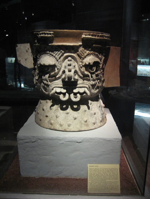 Source: WTL© digital photograph (2009) taken in the Museo del Templo Mayor, Mexico City. Comments: This is a funerary vase, used for holding ashes. Notice the horror vacui (see: => Key Terms) ornamentation on the vase. Humanities Question: Why would a funerary vase employ a horror vacui mode of artistic decoration? |