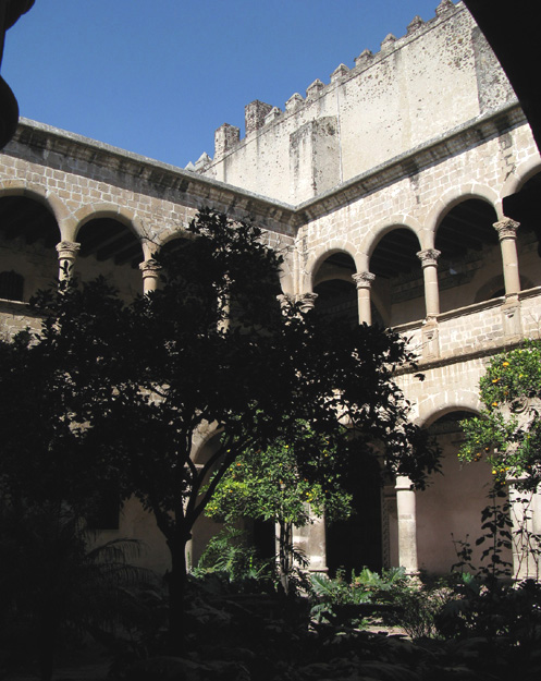Source: WTL© digital photograph taken on site at the former monastery of San Agustín Acolman. Comment: A view of a corner of the central cloister, just after entering the monastery. Humanities Question: How would describe the architecture? |