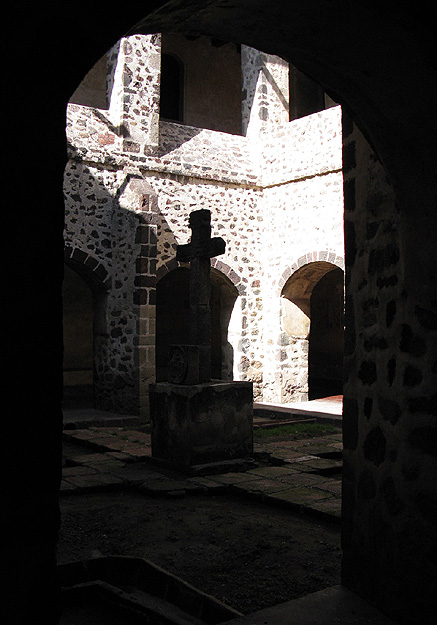Source: WTL© digital photograph taken on site at the former convent of San Agustín Acolman. Comments: Before leaving, we pause in the intimate tranquility of the convent's small cloister, and we notice the simple stone cross in the center of this patio, which reminds us that this was once a thriving Christian institution. Humanities topic and questions: The professor-photographer took this shot for its chiaroscuro effect. What does that mean? How does this effect--assuming it's moderately well realized--comment on the tour you have just completed? |