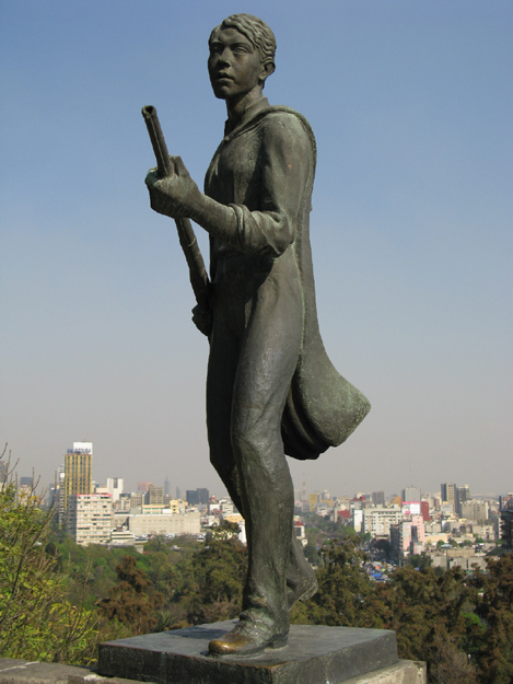 Comments: Here is a statue of one of the heroic boy cadets. At first the bodies of the six boys were buried in the Chapultepec Park in unmarked graves. However, their remains were found and identified in 1947, and, in 1952, they were re-buried at the Monument to the Heroic Cadets (see: => Niños Héroes #5).