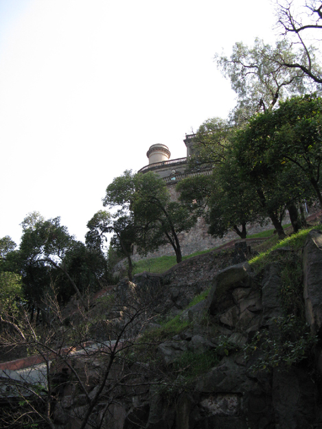 Source: WTL photograph taken in Chapultepec Park, Mexico City. Comments: Now you are looking up from where the boys landed to the Castillo's ledge above from which the boys jumped.