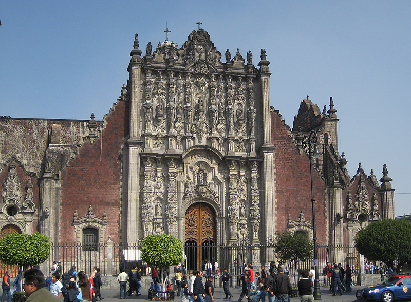 Image: The capilla churrigueresca alongside the Catedral Metropolitana. For additional views of this famous architectural façade, see: => Mexico City #6; => Mexico City #6b; and => Mexico City #6c.