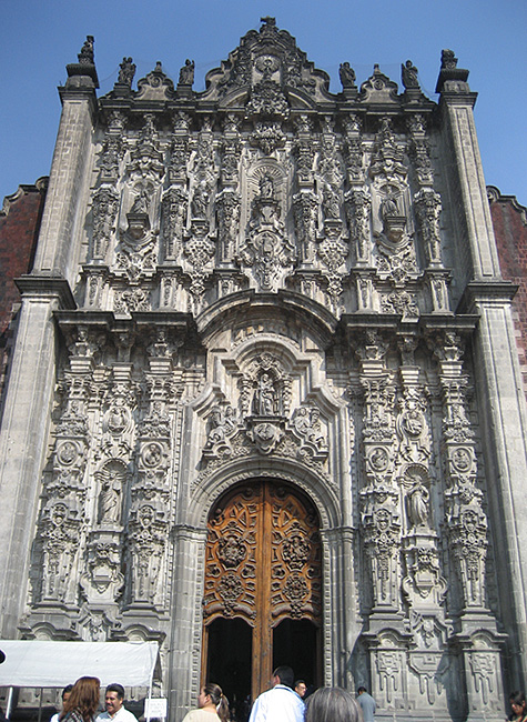 Source: WTL photo© on site in Mexico City, 2008. Image: The capilla churrigueresca alongside the Catedral Metropolitana. For additional views of this famous architectural façade, see: => Mexico City #6; => Mexico City #6a; and => Mexico City #6b. Comments: The final close-up view of the façade. |