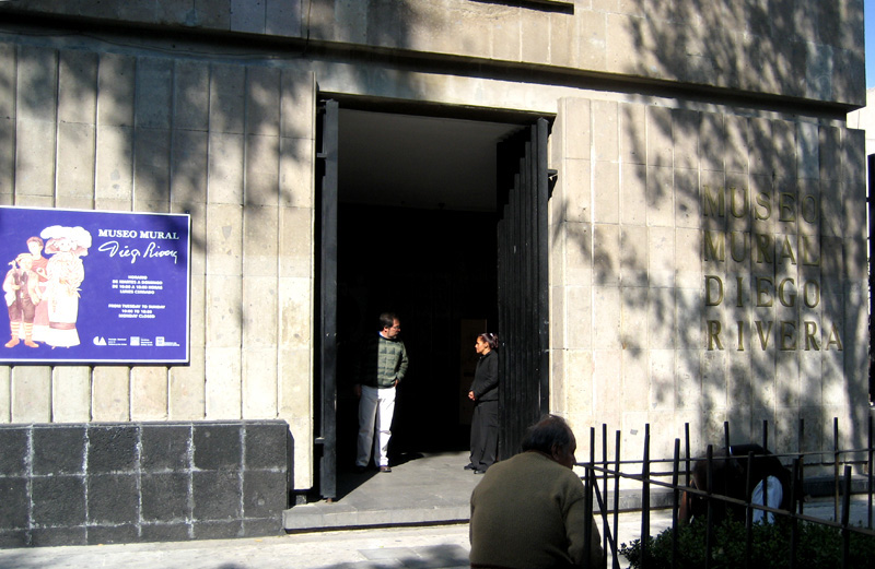 Source: WTL photo© on site in Mexico City, 2008. Image: Entrance to the Museo Mural Diego Rivera, where we find Diego Rivera's monumental mural: Sueño de una tarde dominical en la Alameda / Dream of a Sunday Afternoon in the Alameda Park (1947-1948). For an overall textbook discussion of this mural placed in the textbook's context of Diego Rivera, see: => Diego Rivera #34. Comments: Rivera produced his massive mural in the old Hotel del Prado, which was demolished after a massive earthquake hit Mexico City in 1985. (Personal note: the professor-photographer often stayed in this hotel through 1984.) Amazingly, the mural was saved and moved to this museum (Museo Mural Diego Rivera) at the corner of Balderas and Colón streets near the Alameda Park in downtown Mexico City. Except for a bust of Rivera (see: => Mexico City #12a) and a few other items, the mural is the only art piece in the museum. Study the mural with this series of photos: => Sueño Mural A; => Sueño Mural B; => Sueño Mural C; => Sueño Mural D; => Sueño Mural E; => Sueño Mural F; => Sueño Mural G; => Sueño Mural H. |