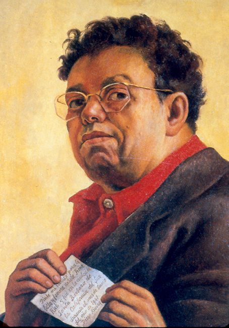 Source: WTL research files and photographs. Image: Self-portrait (1941) in the Museum of Art at Smith College, in Northhampton, Massachusetts. Comments: In December, 1940, the San Francisco Museum of Art holds an exhibition of Rivera's works. In 1941, Sigmund Freud commissioned Rivera and Frida Kahlo to paint self-portraits for him. This painting is almost identical, but it was commissioned by the actrice Irene Rich. The Spanish note says: "I painted my portrait for the beautiful and famous actrice Irene Rich, and it was in the city of Santa Barbara in Southern California in the month of January, in the year 1941. Diego Rivera." Questions: What is the artist saying about himself? How does the note relate to the sense of the painting? |