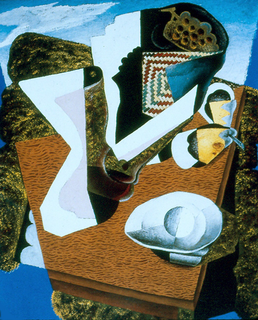 Source: WTL research files. Painting: "Still life With Gray Bowl" (1915). Comments: In 1914, Diego Rivera was in close contact with the artists Juan Gris (Spain), Pablo Picasso (Spain), Jacques Lipchitz (Lithuania), and the Spanish Dadaist writer Ramón Gómez de la Serna. At the outbreak of World War I, Rivera and his friends move to Madrid. In the first half of 1915, Rivera paints in the Cubist manner, as you see in this painting, but by the end of the year, due to events in the Mexican Revolution (e.g., Pancho Villa's victory at Celaya), he begins to incorporate Mexican motifs in his works. |
