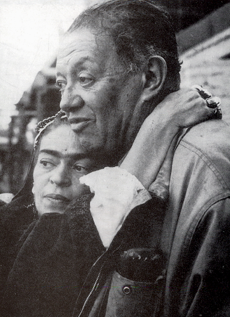 Source: WTL research files. Photograph: Frida and Diego in 1954. Comments: In 1952, Frida Kahlo signs a manifesto in support of pacifism. In 1953, she has her first monographic exhibition of her work. She attends the opening in a hospital bed because her right leg had been amputated. She dies in her Casa Azul in Coyoacán in July, 1954. |