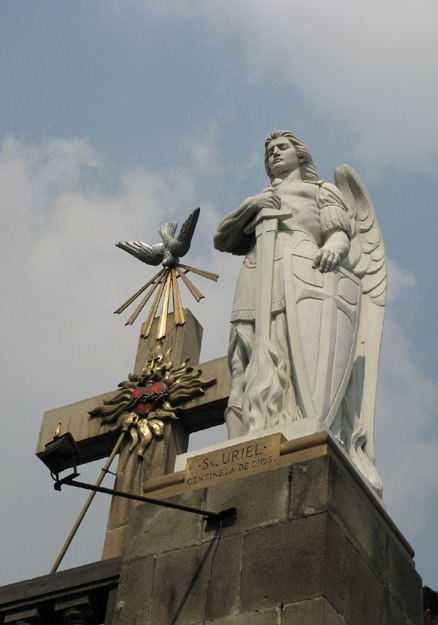 Source: These images were taken by WTL at the Basílica de Nuestra Señora de Guadalupe (Basilica and Shrine of Our Lady of Guadalupe) in Tepeyac, México. Comments: On the far right corner stands this statue for Saint Uriel, "God's Centinel".