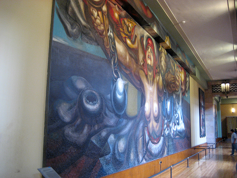 Source: WTL digital photograph in front of the Palacio de Bellas Artes, Mexico City. Comments: In the next few digital pages we will walk along in front of this giant mural by David Alfaro Siqueiros.