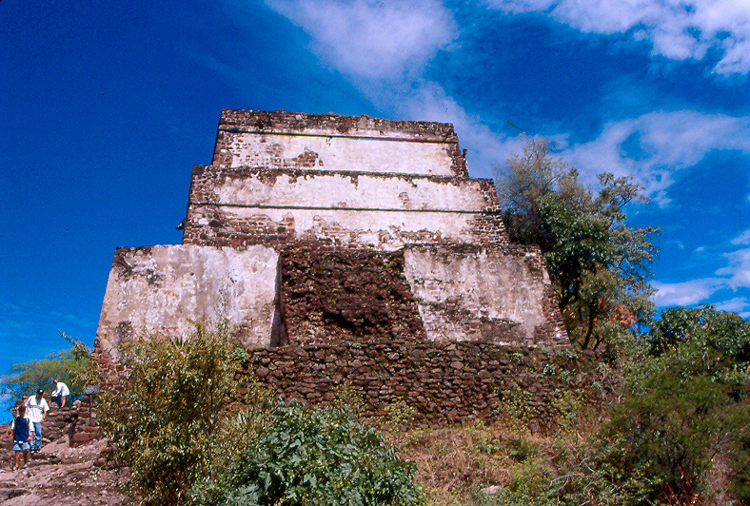 Source: WTL© digital photograph taken on site at Tepoztlán. Comments: This is the Tepozteco pyramid. It's not large, as you see, and it has been repaired. Here the Aztec god Tepoztecatl was worshiped, the god of the harvest, fertility, and pulque. Humanities Questions: (A) What is your reaction to the fact that this pyramid was built at the top of a tall and nearly inaccessible hill? (B) Can you think of other religious monuments or edifices that exist at the top of such forbidden hills? (C) What is the purpose, in your view, of having a worship center in such a place? |