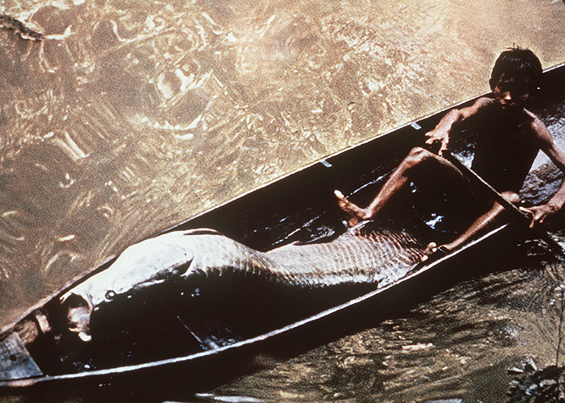 Location: Brazil; Amazon River Images: River; canoe; boy; giant dead fish Comment: Cultural begins when humans build tools and conquer nature. Cultural humanities: (A) Fear of sea monsters is being controlled, tamed; (B) see image #3.
