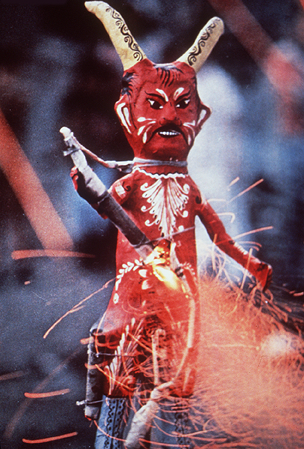 Cultural humanities: Social custom with traditional artisanal creation; representation of devil or cultural other to ward off individual and community disaster.