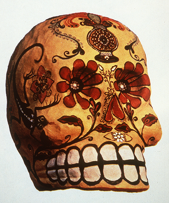 Location: Mexican mask Images: Photo of Mexican mask Comment: Identify all of the images represented on this mask; then fuse them together into an interpretation. Cultural humanities: Traditional Mexican artisanal art