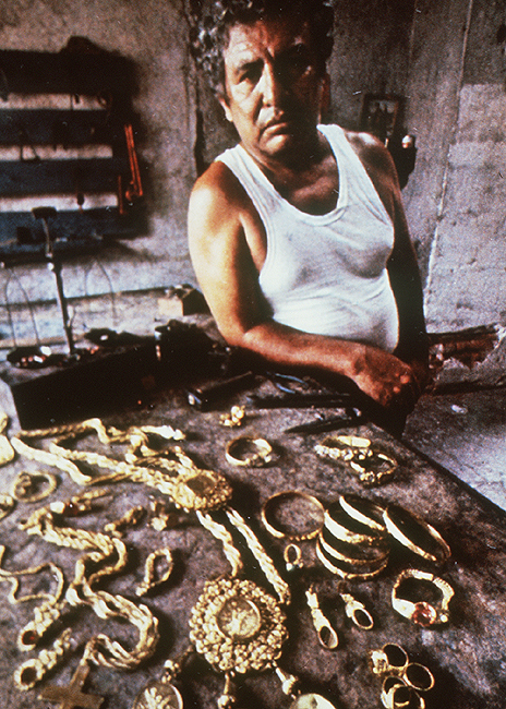 Images: Jeweler with gold jewelry of his design and creation.