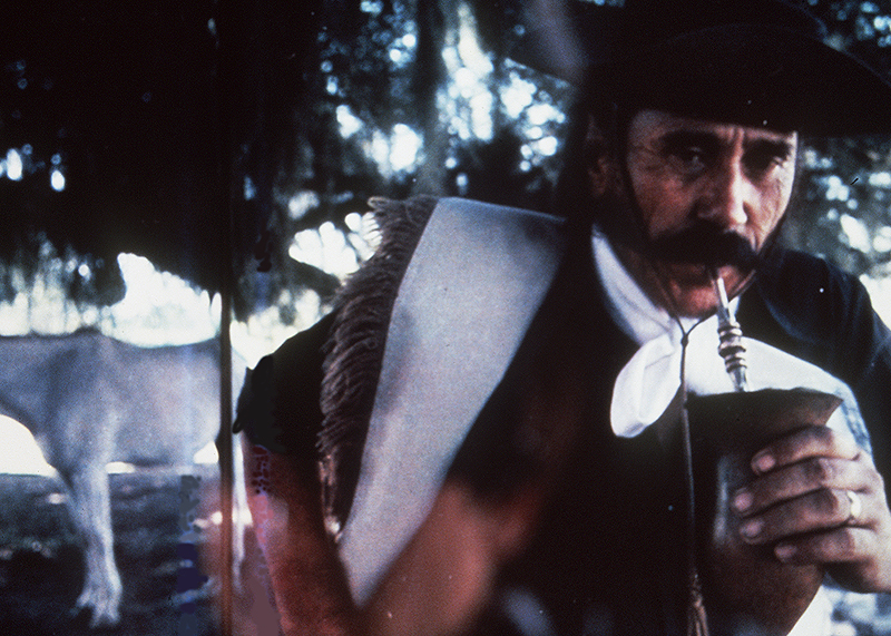 Location: Argentina Images: Gaucho, mate, horse. Comment: Mate is a strong tea drink that is associated with Argentina and gauchos. Cultural humanities: (A) machismo (B) dignity of free individuals