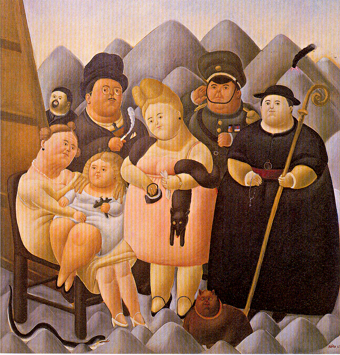 Comment: Painting by the contemporary Colombian artist Fernando Botero (b. 1932) titled "The President's Family " (1967). What is your interpretation of this painting? (Hint: Compare with Velázquez's painting "Las Meninas".