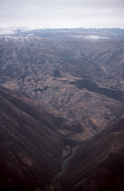 Source: WTL photo taken in July the from an airplane over the Peruvian Andes near Cuzco. Comments: As the airplane beings to descend toward Cuzco, the ancient capital of the Inca Empire, we see how dry, rugged, and barren this mountainous region is. Imagine, for example, that you are (a) a modern Quechua, (b) an ancient Inca, or (c) a Spanish conquistador. |