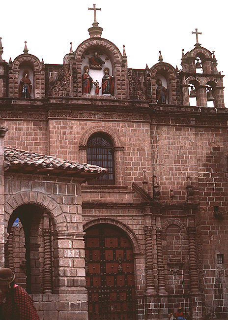 Source: WTL photo taken in El Cusco. Comments: This is the Capilla de la Sagrada Familia (Holy Family Chapel), which is found adjoining the Cathedral. Originally, this building belonged to the Inquisition. Executions ordered by the Inquisition but carried out by the secular authorities were held in the public square in front of this building. |